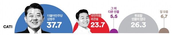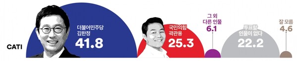 김한정 의원은 진접읍·오남읍과 18~29세, 40대와 70대 이상에서, 김병주 의원은 별내면·별내동과 50대에서 유리한 것으로 나타났다.