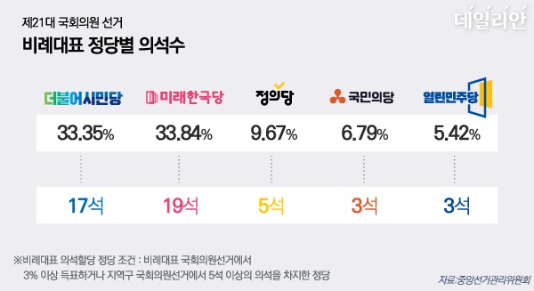 47석이 배분된 당시 총선에서 미래한국당이 19석, 더불어민주당이 17석을 가져가고 정의당 5석, 국민의당 3석, 열린우리당 3석이 배분돼 소수정당의 사표를 방지한다는 당초의 도입 목적과는 거리가 있었다. 또 비례대표제가 연동형, 준연동형 등 제도가 복잡해 일반인들이 잘 이해할 수 없는 것도 비례대표제에 대한 거부감을 키운 요인으로 분석된다.