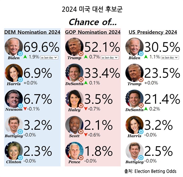 현직에도 불구하고 지지율 경쟁에서 고전 중인 바이든 대통령은 공화당 예비 후보 중 ‘사법 리스크’를 안고 있는 트럼프로 최종 후보가 확정되기를 희망하고 있다. 상대적으로 젊고 여성에다 새로운 인물, 즉 헤일리 전 유엔대사가 나오면 자신의 고령이 한층 부각되면서 트럼프를 상대하는 것보다 더 어려운 승부가 될 것으로 보고 있다.