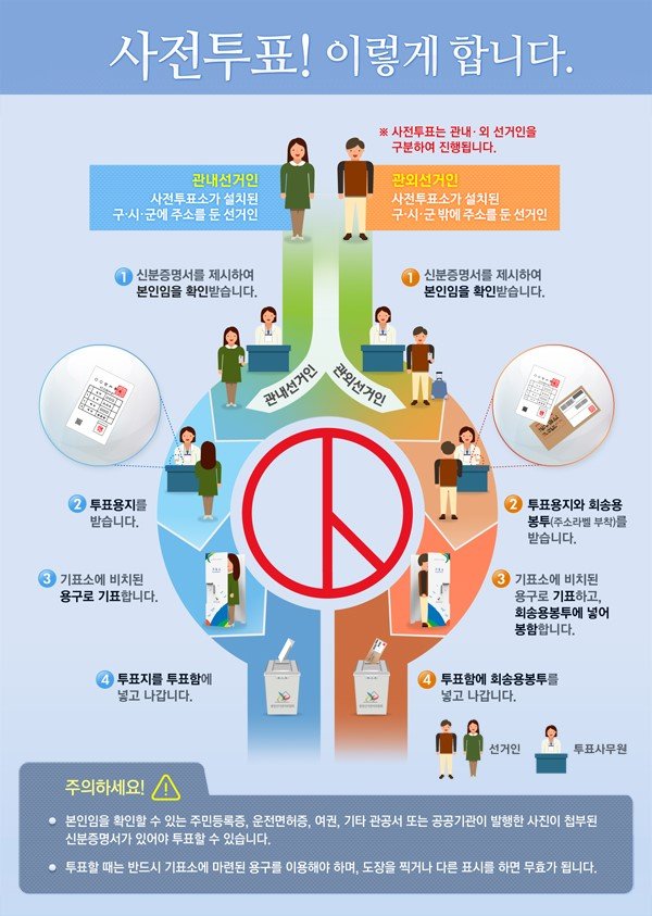 사전투표는 당일 투표가 어려운 선거인을 대상으로 투표일(수요일) 이전 5일 전, 즉 금~토요일 이틀 간 전국 어느 투표소에서나 미리 투표할 수 있는 제도다. 각종 선거에서 투표율을 높이는데 기여한 것으로 알려지고 있지만, 다른 한편에선 조작 가능성이 제기되고 있다.