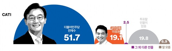 마지막으로 전재수 의원 대 이성권 전 부시장의 가상대결에서는 51.7% 대 19.1%로 격차가 더 벌어졌으며, 투표할 인물 없음도 19.8%로 더 증가했다.