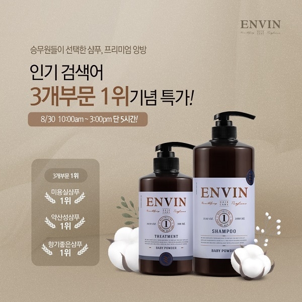 빅데이터 분석을 통한 2022년 8월 '샴푸 브랜드' 평판에서  '앙방(Envin) 샴푸'가 1위를 차지한 것으로 분석되었다.