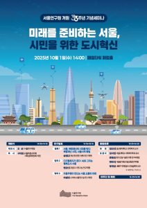 서울연구원(원장 오균)은 10월 1일(수) 오후 2시 페럼타워 페럼홀에서 ‘미래를 준비하는 서울, 시민을 위한 도시혁신’을 주제로 개원 33주년 기념세미나를 개최한다. 이번 세미나는 서울연구원 개원 33주년을 기념해 복합재난 대응, 디지털 복지, 자율주행 교통 등 급변하는 도시환경 변화 속에서 서울이 향후 나아가야 할 혁신 전략과 정책적 해법을 모색하기 위해 마련한 자리이다. 세미나는 △오균 서울연구원장의 개회사 △구미경 서울특별시의회 기획경제위원회…