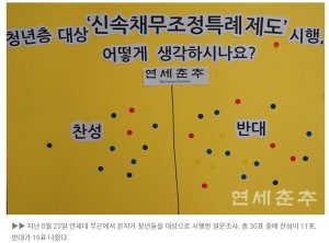 반대 63% vs. 찬성 37%..청년층에서 반대의견 더 많아 정부 부실한 정책 홍보 불만도 나와..”일방적 발표” 불통 지적