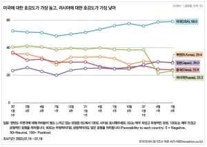 우리 국민 주변국 ‘호감온도’ 미국 59도 1위