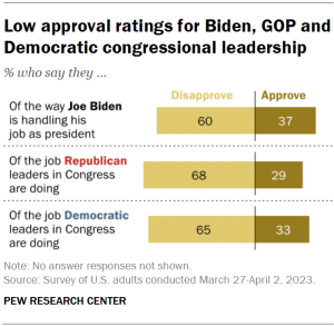 윤대통령 지지율 27%, 바이든 대통령 지지율 37% 국내 정당호감도 더불어민주당 32%, 국민의힘 33% 미국 정당호감도 민주당 33%, 공화당 29%