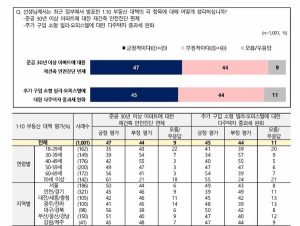 ‘소형 빌라·오피스텔 다주택자 중과세 완화’ 긍정 45%, 부정 44% 정부 부동산 정책 전반에 대한 평가 : 부정적 59%, 긍정적 32%