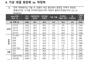 범보수 인물 호감도 한동훈38%, 홍준표13%, 유승민9%, 이준석9%, 원희룡7%, 오세훈6%, 안철수4% 이준석 신당 행보 “관심 없다” 42%…”국힘으로 복귀” 26%