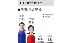 4·10 총선 평택갑 선거구 여론조사에서 더불어민주당 홍기원 후보가 과반 지지율을 기록하면서 현역 초선 의원 간 맞대결 상대인 국민의힘 한무경 후보에게우위를 보였다. 기호일보가 여론조사 전문기관 한국여론평판연구소(KOPRA)에 의뢰해 지난 29∼30일 이틀간 이곳 유권자 501명을 대상으로 진행한 여론조사 결과, 민주당 홍 후보 51.2%, 국민의힘 한 후보 37.1%로 집계됐다. 투표할 후보가 없다 6.9%, 잘 모르겠다 4.8%였다. 홍 후보는 50대 이하 연령층에서 높은 지지를…