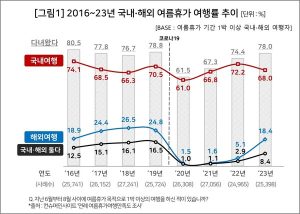 국내 여행 경험률 1위는 강원도 24.6%, 4명 중 1명이 찾아/ 해외여행자는 18.6%, 코로나19 발병 4년 전인 2016년 수준 근접