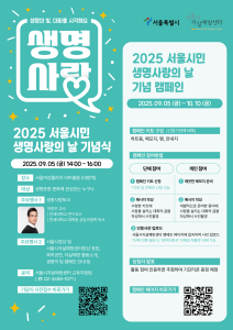 서울시자살예방센터는 2025년 ‘서울시민 생명사랑의 날 기념식’을 오는 9월 5일(금) 14시 서울여성플라자 아트홀 봄에서 개최한다. 서울시자살예방센터가 ‘2025 서울시민 생명사랑의 날 기념식’을 9월 5일(금) 서울여성플라자 아트홀 봄에서 개최한다 ‘자살예방의 날(9.10.)’은 자살예방을 위한 적극적인 노력과 사회분위기를 조성하기 위해 제정된 기념일이며, 세계보건기구(WHO)와 국제자살예방협회(IASP)가 자살예방에 대한 인식개선을 위해 2003년 9월 10일을 자살예방의 날로 제정된 바 있다. 기념식은 시민 모두가 서로의…