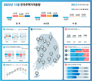 한국부동산원 ‘2023년 12월 전국주택가격동향조사’ 전국 주택종합 매매가격 지수 2년 연속 하락…2022년 4.68%↓, 2023년 3.56%↓